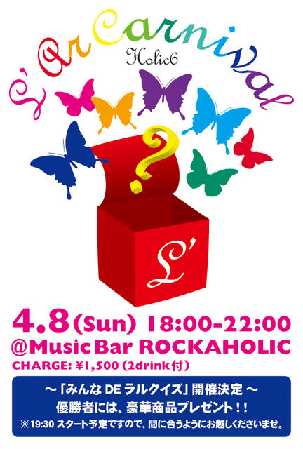 爆音でL'Arcをかけてお洒落なMusic Barで飲んで歌ってみんなで踊りましょうムード いつものLIVEと違った一体感とノリで自分の好きなようにラルクを楽しめますぴかぴか(新しい) みんなdeラルクイズ開催exclamation ×2 Spesialイベントるんるんチーム対抗戦によるラルクイズモバQ 優勝チームには豪華特典プレゼントプレゼント 世界を周るL'Arc~en~Cielの歴史をみんなで振り返っちゃいましょう揺れるハート ********************************************************************************** NEWSpecial第1弾NEW 海外限定版のXXX・CHASE英語Ver解禁