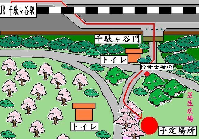 今年もやります 今年は4月8日(日) AM10時スタート 皆さん、参加よろしゅう(´∀`*)ウフフ 開始時間:AM10時頃(途中合流OKです) ※榊原企画の準備担当者は、朝の9時から現場にいます。 ※場所は、いつものお堀の上の所です(写真参照) ※現地に到着されましたら、色違いの和田T(スタッフ)にお声かけ下さい。参加費用と引き換えに本日のチケットをお渡しします。 終了時間:16時頃を予定(未定) 参加費用:500円と皆で飲み食いできる何か一品             注意事項: ?警察沙汰、周りの客に過度な迷惑をかけない