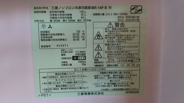 2009年式三菱冷蔵庫 5000円 横浜市保土ヶ谷区からの出品です。 傷や故障はありません。 引渡しは12日までとなります。 手渡しもしくは佐川急便飛脚フリーサイズでの配送です。 佐川急便の料金はサイズ240、重量33キロのため、関東近郊5030円〜北海道5450円です。
