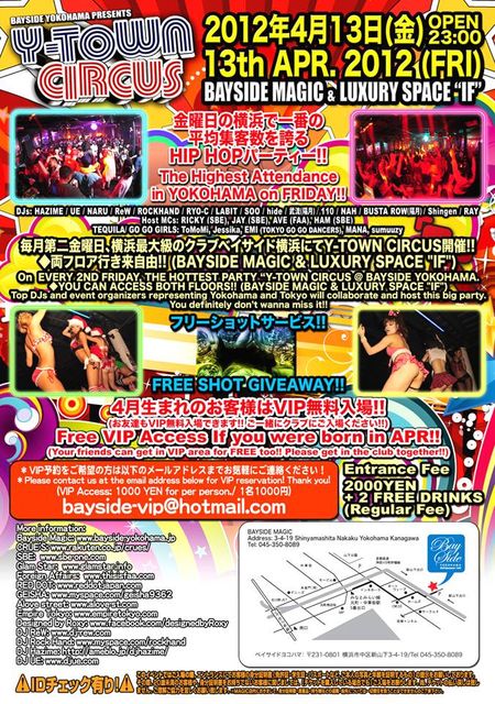 ☆★4/13 fri 横浜の金曜日で一番最大の平均来場客数を誇るイベント:Y-TOWN CIRCUS!ベイサイド横浜スペシャルイベント! DJ HAZIME等、豪華DJ出演!☆★