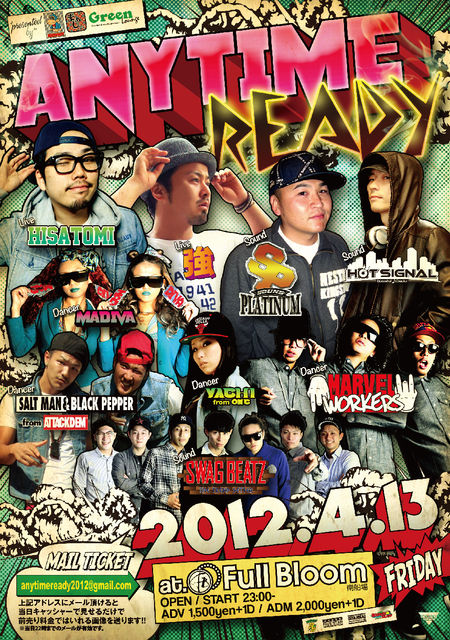 お手持ちの携帯電話から anytimeready2012@gmail.com にメール頂けると当日キャッシャーで見せるだけで前売り料金で入れる画像を返信します。(※当日22時まで