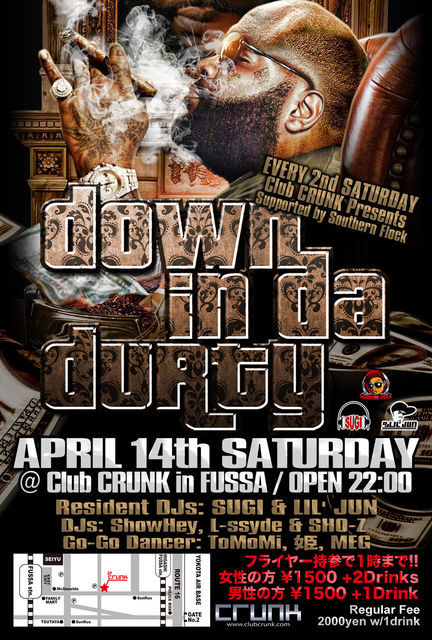 毎月第二週目、福生Club CRUNKの土曜日は"DOWN IN DA DURTY" !!