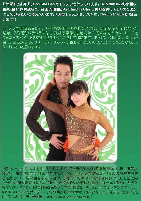 好評頂いている「Cha Cha Cha」のレッスンにはDJ S@MURAIも参加し、