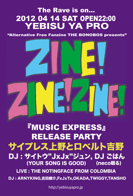 「ZINE ! ZINE ! ZINE !」サイプレス上野とロベルト吉野 『MUSIC EXPRESS』リリースパーティー