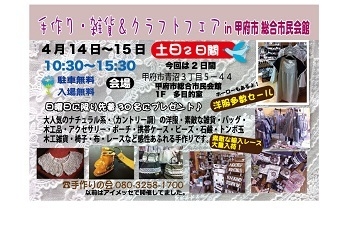 急でごめんなさい(>_<) ホームページでは報告してましたが、 mixi の報告遅れました(>_<) 今週の土・日曜日(14〜15日) 甲府市民会館にて 手作り雑貨クラフトフェアが 開催されまーす\(^o^)/ 暇な方はぜひお越しください♪ かわいくてほっこりするもの 沢山あります! 宝物探してみてください☆ お待ちしております(*^^*)