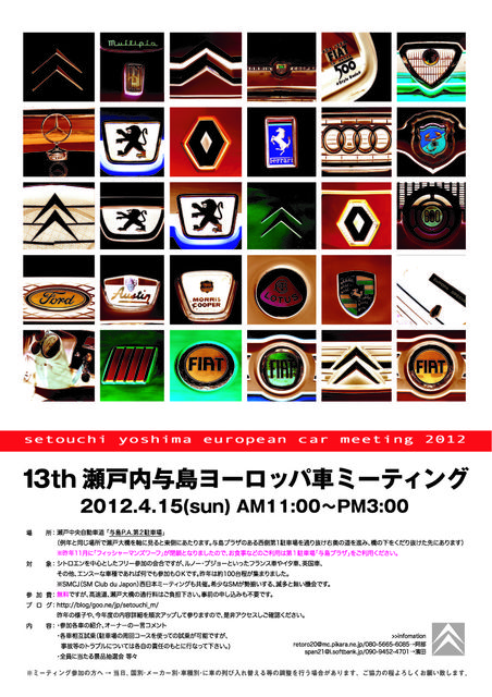 ¹±Îã¤È¤Ê¤Ã¤¿¡ÖÍ¿Åç¥ß¡¼¥Æ¥£¥ó¥°¡×¤âº£Ç¯¤ÇÂ裱£³²ó¤ò·Þ¤¨¤ë¤³¤È¤Ë¤Ê¤ê¤Þ¤¹ ¤¬¡¢°Ê²¼¤ÎÆüÄø¤Ç¼Â»Ü¤òͽÄꤷ¤Æ¤ª¤ê¤Þ¤¹¡£ Æü»þ¡§£²£°£±£²Ç¯£´·î£±£µÆü¡ÊÆü¡Ë¡¡11:00¡¡¡Á 15:00 ¾ì½ê¡§À¥¸ÍÃæ±û¼«Æ°¼ÖÆ»¡¡Í¿Åç£Ð£Á Â裲Ãó¼Ö¾ì Âоݡ§¥·¥È¥í¥¨¥ó¤òÃæ¿´¤È¤·¤¿¥Õ¥ê¡¼»²²Ã¤Î²ñ¹ç¤Ç¤¹¤¬¡¢¥ë¥Î¡¼¡¦¥×¥¸¥ç¡¼¤È ¡¡¡¡¡¡¡¡¡¡¡¡¤¤¤Ã¤¿¥Õ¥é¥ó¥¹¼Ö¤ä¥¤¥¿¥ê¥¢¼Ö¡¢±Ñ¹ñ¼Ö¡¢¤½¤Î¾¡¢¥¨¥ó¥¹¡¼¤Ê¼Ö¼ï¤Ç ¡¡¡¡¡¡¡¡¡¡¡¡¤¢¤ì¤Ð²¿¤Ç¤â»²²Ã£Ï£Ë¤Ç¤¹¡£ ÈñÍÑ¡§»²²Ã¤Ï̵ÎÁ¤Ç¤¹¤¬¡¢¹â®ƻ¡¢À¥¸ÍÂç¶¶¤ÎÄ̹ÔÎÁ¤Ï¤´Ééô²¼¤µ¤¤¡£ ÆâÍÆ¡§°Ê²¼
