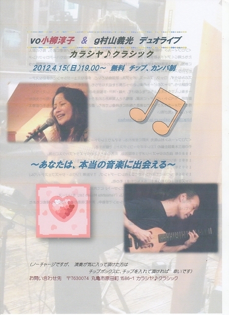 vo¾®Ìø½ß»Òg¼»³µÁ¸÷¤¬¹áÀ¤Ë»²¤ê¤Þ¤¹¡ª »Í¹ñÃÏÊý¤ÎÊý¡¹¡¢¤É¤¦¤¾²ñ¤¤¤ËÍè¤ÆÍߤ·¤¤¡¼¡ª ¡ú4·î15Æü(Æü)19:00¡Á¹áÀ¡Ú¥«¥é¥·¥ä¥¯¥é¥·¥Ã¥¯¡Û http://www.doko.jp/search/shop/sc71465206/ open 18:00¡Á¡¡¡¡start 19:00¡Á vo¾®Ìø½ß»Òhttp://blogs.yahoo.co.jp/junko_chanchan g¼»³µÁ¸÷http://murayaman.blog72.fc2.com/ ¥Á¥ã¡¼¥¸ ¡¡ÌµÎÁ¡¡¥Á¥Ã¥×¥«¥ó¥ÑÀ©¡£¡¡ ÈþÌ£¤·¤¤¥ª¥í¥Á¥ç¥ó¥é¡¼¥á¥óÅù¡¢Â¾¤´Ãíʸ²¼¤µ¤¤¡£ ¹áÀ´Ýµµ»Ô¸¶ÅÄÄ®1586ް1 ¡¡¡¡ ÅÅÏâ§0877-24-7771 vo¾®Ìø½ß»Ò¤µ¤ó¤¬¥Õ¥¡¡¼¥¹¥ÈCD¥¢¥ë¥Ð¥à¤¬ ¡Ø Find The