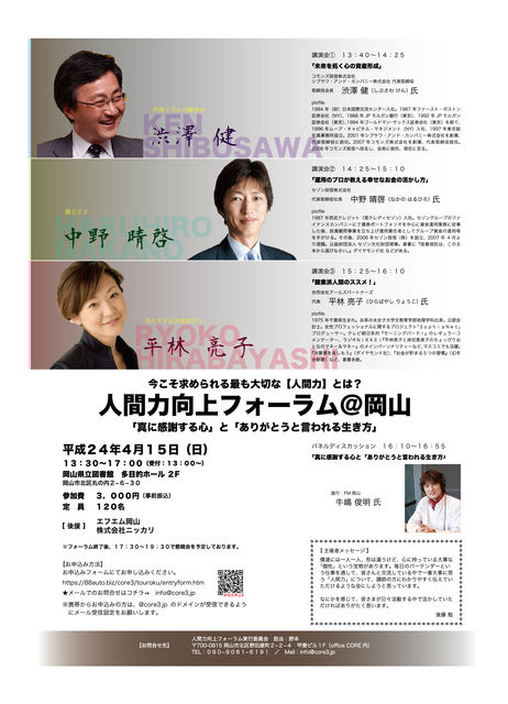 ¡Ú¿ÀÅľ»Åµ¤Î¿Í´Ö¥Ó¥¸¥Í¥¹³Ø¥»¥ß¥Ê¡¼IN²¬»³¡Û Æü»þ¡§£²£°£±£²Ç¯£´·î£±£µÆü¡ÊÆü¡Ë¡¡£±£³¡§£³£°¡Á£±£¸¡§£°£° ¿¾¯¡¢»þ´Ö¤¬±ä¤Ó¤ë²ÄǽÀ¤â¤¢¤ê¤Þ¤¹¡£ ;͵¤ò»ý¤Ã¤Æ¤ª±Û¤·²¼¤µ¤¤ ³«ºÅ¾ì½ê¡§²¬»³¥ª¥ë¥¬¥Û¡¼¥ë¡¡Ãϲ¼Âç¥Û¡¼¥ë¡¡¡¡ ¡Ê²¬»³»ÔË̶èÊô´ÔÄ®£±¡Ý£·¡Ý£·¡¡ ¡¡¡¡¡¡JR²¬»³±Ø¡¡À¾¸ý¡¡Ë̤ØÅÌÊ⣵ʬ¡Ë »²²ÃÈñ¡§£±£²£¶£°£°±ß¡ÊÀǹþ¡Ë Á°Ìëº×¥»¥ß¥Ê¡¼¤Ë¤ª¿½¤·¹þ¤ß¤ÎÊý¤Ë¤Ï ¤ªÆÀ¤Ê³ä°úÆÃŵ¤¬¤¢¤ê¤Þ¤¹¡£ Á°Ìëº×¥»¥ß¥Ê¡¼¤Ï¤³¤Á¤é¢ http://ameblo.jp/wakuwaku-newsletter/entry-11137502828.html ¤ª¿½¤·¹þ¤ß¤¤¤¿¤À¤¤¤¿Êý¤Ë¤ª¿¶¤ê