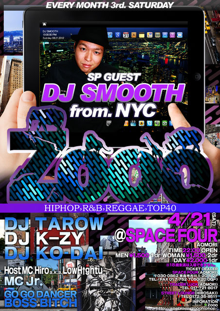 4月21日「Zooo Vol.4」は四回目にして、スペシャルゲストDJに本場NYCでプレイする最高にナイスなDJが登場です!