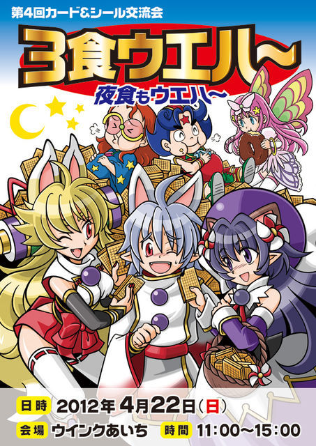 カード&シール交流会『3食ウエハ〜夜食もウエハ〜』 日時:2012/4/22(日) 場所:愛知産業労働センター ウインクあいち ※開催会場が昨年とは異なるため、ご注意ください!! 入場料:500円 今後、イベントを続けていくために大変申し訳ありませんが会場費の一部ご負担をお願いします。 会場が名古屋駅の近くになりました♪ 例年利用していたサンライフ名古屋様は年度末で閉館なので今年から新たな会場で行うことに。 今までと違う会場なので、新しい気持ちで今まで以上に楽しめるようにいろんなことをやってみたいと思