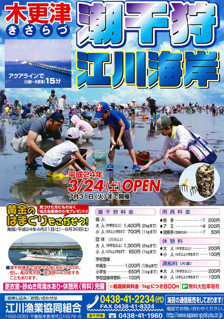 今回のイベントは 地元静岡ではなく 千葉県木更津市での潮干狩りです 道のりは 東名高速 東京湾アクアライン等を経由して 片道 144km 2時間22分です(Googleマップによる検索) 当日の干潮時刻は午前11時25分で お勧めの潮干狩りタイムは 9時30分から13時30分らしいです 朝6時位に 沼津を出発すれば間に合うかな? まことに勝手ながら 夕方 私用がありますので 潮干狩りが済んで 軽く食事でもしたら さっさと引き上げてしまう予定です 車は 人数が決まり次第 参加者同士で決めたいと思います 参加表明の際