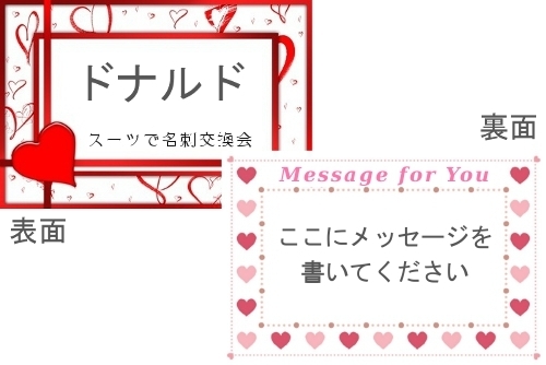 若い女性に大ヒット中のチョコ食べ放題 映画ペア劇場招待券、スタバカードなどデートで使えるチケット各種プレゼント なんと2日で合計12名のみなさんにプレゼント 毎月大好評「スーツ飲み会」のスペシャル版です 4月は新しい出会いの時期って事もあり、題して スーツで名刺交換会 今回はニックネーム入りのオリジナル名刺を20枚ずつお渡しするので、参加者全員で交換し合い、全部交換した人からプレゼントがもらえるドキドキワクワクのイベントです ただ