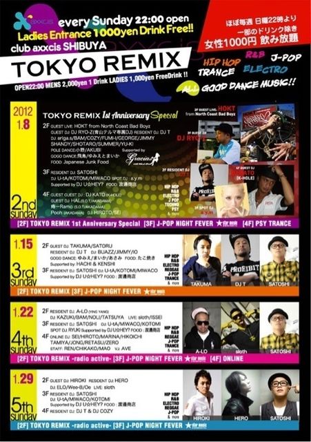 管理人様、告知文失礼いたします。  不適切でしたら削除よろしくお願いしますm(__)m  ディスカウント料金でご入場希望の方はエントランスにて  「djゆうたのゲストでゆうた」とお伝え頂くとご入場頂けます!  質問等もお気軽にメッセージ下さい!  ************* -J-POP NIGHT FEVER- Every Sunday @Club axxcis 3F OPEN / 22:00〜Midnight GENRE / J-POP ENTRANCE /  ♂1000 / ND ♀1000 / Free Drink Resident DJ SATOSHI DJs  U-tA,MIWACO,KOTOMI Suported by