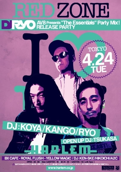管理人様告知失礼します。 「RED ZONE 」 ■日程:4月24日火曜日 ■時間:22:00〜midnight ■開催場所:渋谷 HARLEM & BX CAFE ■出演者 ☆★RED ZONE @ HARLEM★☆ ☆RESIDENT DJ☆ KOYA / KANGO ☆★ROYAL FLUSH @ BX CAFE★☆ ☆RESIDENT DJ☆ KEN-SKE [ゲスト料金] 1時まで:¥1000+1drink 1時以降:¥1500+1drink ゲスト希望の方は ※「アローズのゲストでシンゴ」 と言って頂ければ、何名様でも上記のゲスト料金にて御入場頂けます! 皆様のご来場お待ちしております☆ ----------------------