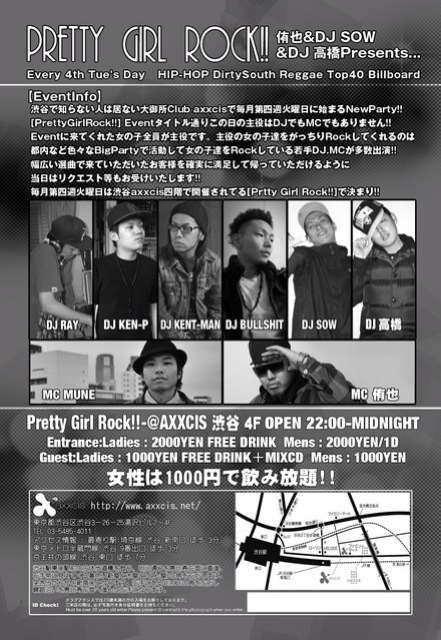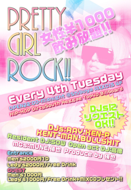 管理人様、告知失礼致します。 ★毎月第四週火曜日渋谷axxcisで開催 女性、1000円飲み放題NewParty 【PrettyGirlRock!!】 ゲストお取り出来ますので、お気軽にメッセージ下さい また、エントランスにて 『ドランカードのゲスト』 と言って頂ければ、何名様でもゲスト料金にてご入場出来ますのでお使い下さい 〈通常料金〉 男性2000円1D 女性1500円Free Drink 〈ゲスト料金〉 男性1000円!! 女性1000円Free Drink!!