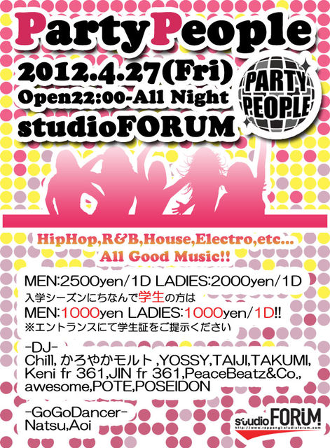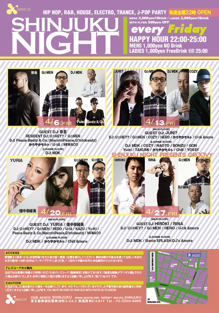 金曜No,1 PARTY 1000人規模で毎週多彩なGUESTアーティスト、ファッション誌とタイアップを行い、女性のお客様を中心に盛り上がっていますイベント企画の華やかさはClub atom NO.1