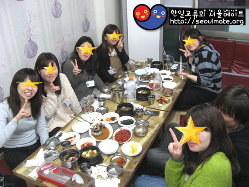 4/27(金)日韓交流グルメ会@ソウル☆のお知らせ 2012年 4月27日(金) 韓国 新村(シンチョン)で、日韓交流グルメ会を行います 2007年からスタートしたこの交流会!2012年で5年目を迎えました 日本に興味がある韓国人と、韓国に興味がある日本人が集まり、隔週に1回、美味しい韓国料理屋、日本料理屋を交互に、楽しい交流会を行っております。 おかげさまでこれまでにたくさんの方にご参加いただきました 韓国料理が好きな方、日本の味が恋しくなった方、韓国語で交流したい方、韓国人とのお友達作り