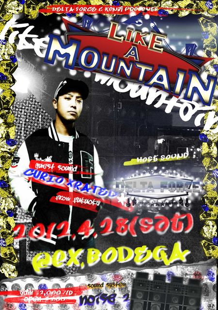 4月のLIKE A MOUNTAINは、かつて関東に在住し、東京、横浜を初め、日本全国数々の現場やClash等でその名を轟かせたSOUND、REDRUMのMCとして活躍し、その後拠点を地元福岡に移し、XXXのMC、SELECTORとして更にその名を全国に轟かせる事となったCURIO XRATEDが、数年ぶりに横浜ex.BODEGAに登場!!!