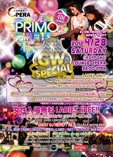 4月28日(土)~Every 4th Saturday"PRIMO" @六本木OPERA~