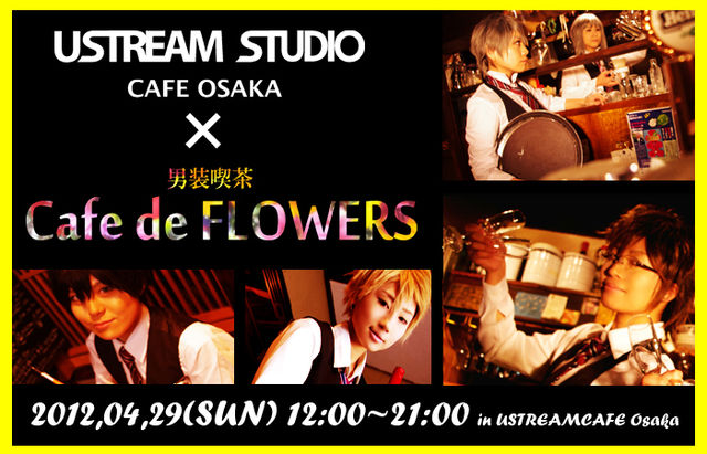 管理人様、スペースお借り致します! *** 「お帰りなさいませ、お嬢様」 【次回開催イベント】 MagicHourCafe主催イベント初の男装喫茶! 『男装喫茶Cafe de FLOWERS(カフェ・ド・フラワーズ)』がOPEN致します! MHC主催イベントでCASTとして活動する彼らが、とうとう男装喫茶を一日だけOPEN! Cafe de FLOWERSキャスト6人がお嬢様、旦那様のお帰りをお待ちしております。 どうか楽しいひと時をお過ごしください。 ◆詳細◆ 開催日/4月29日(日) 開催場所/USTREAM STUDIO CAFE OSAKA(ユーストリームスタジオカフェ大阪)