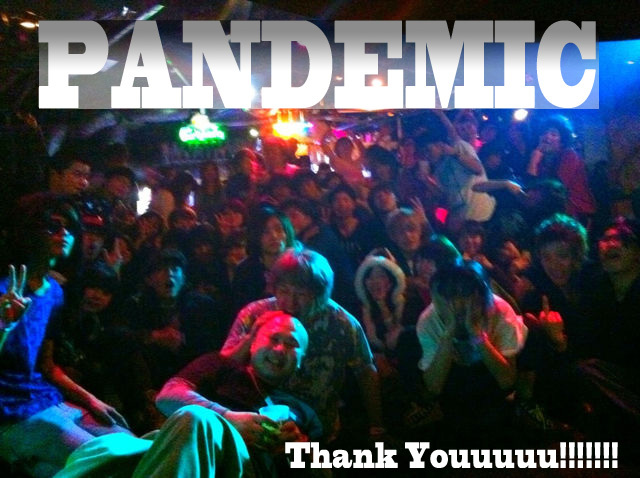 『PANDEMIC vol.2』 2012.4.29 Ticket…1000yen(+drink charge) Open…1630 Party…1700-2200 at…三軒茶屋HELL'sBAR ―DJ― π太 LIGHTル けた 38 包帯 ―GUEST― Daisuke from “sever black paranoia” 前回の大盛況に引き続き、大注目のスクリーモバンド、sever black paranoiaからvocalのDaisuke氏の再戦が決定! COMIN'KOBE 12 GOLD RUSH 2012 出演決定!!!!! 若手ボーカリストを代表する"叫び師"のシャウトを間近で体感できるのはここPANDEMICだけです。 参加表明はこの