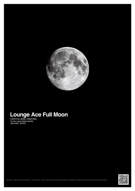 毎月、満月の日のAce-cafeはLuxuryでSlowなひとときを! LoungeAceって何かって言うと、クラブスタイルではなくラウンジスタイルでのDJが入ります! アゲル訳でもなく、うるさい訳でもありません。食事、お酒、CAFEを楽しみながら、心地よい音楽に包まれてください。 今年からこの Lounge Ace Full Moonの空間をace-cafe STAFFでキャンドルアーティストのcandle NがLOVE&PEACEをイメージして作ったキャンドルで彩ります。 満月の日に現れる幻想的な空間へお越し下さい!!! 2012 / 5/6. 6/4. 7/3. 8/2. 8/31. 9/30. 10/29. 11/28. 12/