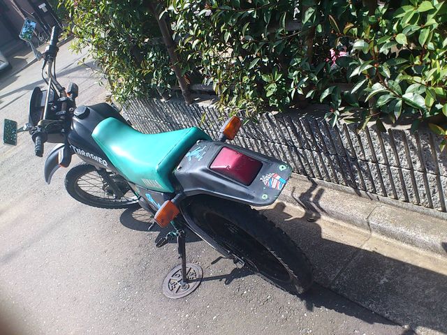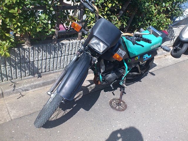 ・メーカー名: ヤマハ ・車名: DT50 ・年式: 1993 ・車体番号:17w-45〇〇〇〇 (下4桁は伏字で構いません) ・2st/4st: 2st ・排気量: 50cc(52ccで登録) ・色:自家塗装の黒(汚い) ・自走: 不能 ・走行距離: 28000? ・車検/自賠責の有無: 無 ・事故歴:当方では無し ・キズや不具合の有無: 自家塗装がひどい(ステッカーの上にサフも 吹かずに直接塗装されてます) 走行距離的に腰上開けた方がいいと思います 。 フロントフォークオイル漏れ 要タコメーターワイヤー交換 要クラッチワイヤー交換(使えま