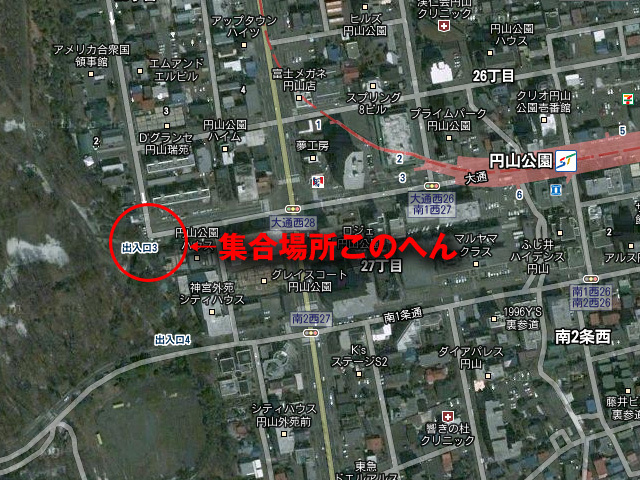 花見やりましょう! 日時:5月13日(日) 【昼の部1次会】11:00〜16:00頃 【夜の部2次会】18:00〜20:00 場所:【昼の部屋外】北海道神宮境内(地下鉄東西線円山公園駅より徒歩数分) 11:00に公園口鳥居(上の地図画像参照)付近集合 【夜の部屋内】お店はこれから考えます 参加費:【昼の部】お一人様\1000程度(時価) 【夜の部】恐らく\3000程度 持ち物:【昼の部】は各自アルコール類お忘れなく(お茶くらいは用意します) 念の