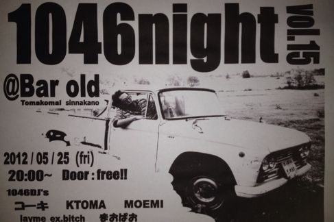 なんとなく15回目です! KTOMAは加苫(カトマ)に改名しました! 2012.5.25fri @Bar old open/20:00 Entrance/Free 1046 DJ's コーキ layme_ex.bitch KTOMA まおぱお パーポー 順番 21:00 パーポー 22:00 まおぱお 23:00 コーキ 24:00 layme_ex.bitch 25:00 加苫