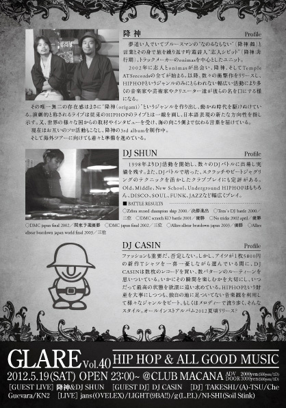 夢追い人でいてブルースマンの"なのるなもない"(降神 鶴)と言葉とその身で旅を繰り返す吟遊詩人・"志人 シビット"(降神 非行期)、トラックメーカーの onimasを中心とし
