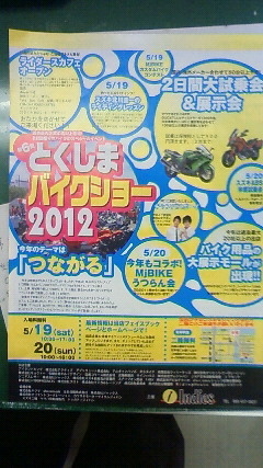 5月19〜20日に徳島でバイクショーが開催されます。 ライダーズカフェがオープンされ珈琲はもちろん徳島ラーメン、徳島バーガ等食べる事ができます。 試乗会&展示会(約100台)も開催(試乗は保険料500円が必要) 20社以上のバイク用品店が出店予定 19日はスズキ北川圭一のライディングレッスン(予約、参加費500〜1,000円) 20日はスズキABS体験試乗会、MJうつらん会とのコラボ 今回の焼き鳥イベントでは20日に行きます 事故・違反の無いよう自己責任でお願いします。 【イベントチラシ】 http