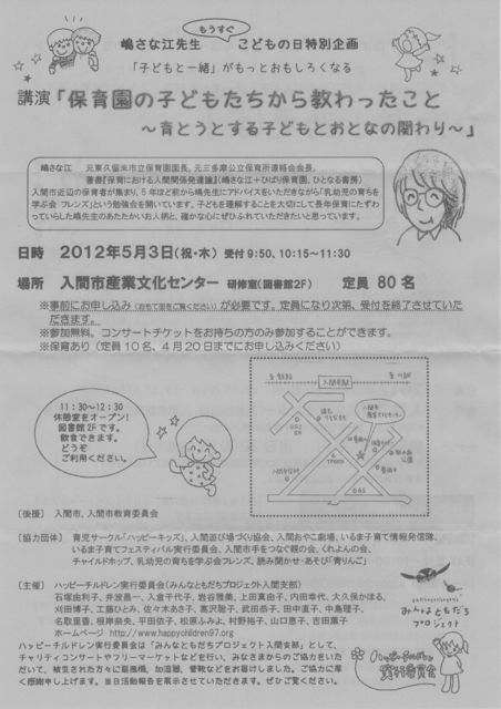 場所・時間等詳細を念の為記載します。 【日時】 2012/5/3(木・祝)14:00〜17:00 【場所】 南越谷小学校体育館 (埼玉県越谷市南越谷4丁目21−1) ?東武伊勢崎線新越谷駅下車西口ロータリーにあるパン屋さん (モンタンヴェール)の前を直進し徒歩5分位 ?JR武蔵野線南越谷駅下車南口連絡通路経由に新越谷駅西口ロータリーにある パン屋さん(モンタンヴェール)の前を直進し徒歩5分位 ※新越谷と南越谷駅は隣接しています。 ・お車でお越しの方は、正門(北側)体育館前に駐車可能です。 ただし、南側の公民館駐車場