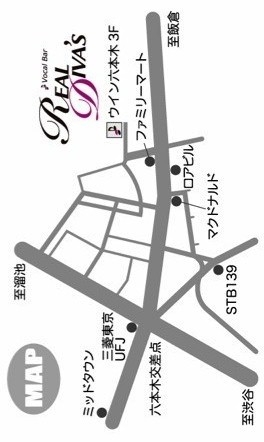 5/8(火) 六本木REAL DIVA'S http://www.realdivas.jp/ 【NEW DIVA3】 開場…19:00 料金…\2500(別途オーダー) Stage 1st.19:30〜 2nd.21:30〜 他出演者 20:00〜/22:00〜 tomo(Vo) http://ameblo.jp/tomonysoul/ 20:30〜/22:30〜 Mia(P&Vo Duo) http://mia-music.jp/index.html http://ameblo.jp/miamusicjp/ http://twitter.com/miamusicjp アクセス 六本木駅3番または5番出口より 外苑東通りを飯倉方面へ 徒歩5分 港区六本木3-15-24 ウイン六本木ビル3F 03-6438-9360