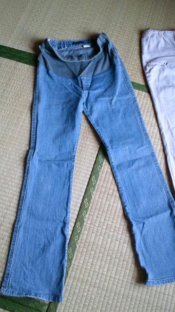 マタニティAngeliebeジーンズ一本。 オマケでとってもはきやすく重宝したチノパンぽいマタニティパンツつき。 サイズはだいたいMサイズ。 股した72センチ。チノパン71センチ。 値段800えん。