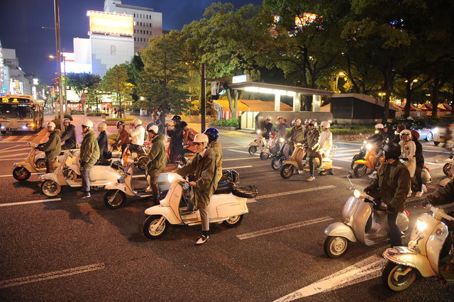 MODS MAYDAY NAGOYAはSCOOTER RUNによって幕が開ける…。 映画「さらば青春の光」のシーンの再現か? 60sロンドンのストリートの光景が名古屋に甦る! きらびやかに彩られたヴィンテージスクーター(ヴェスパ&ランブレッタ)で栄から大須、名駅を駆け抜け会場の新栄APOLLO THEATERへ。 1990年に誕生して以来今年で23年目を迎えるMODS MAYDAY NAGOYA。 名古屋の全てのMODSや60sフリークにとって特別なMODSの祭典の開演前に行われる、ヴィンテージスクーターによるパレードがSCOOTER RUN。 名古屋で行われるSCOOTER RUNとしては最大規模