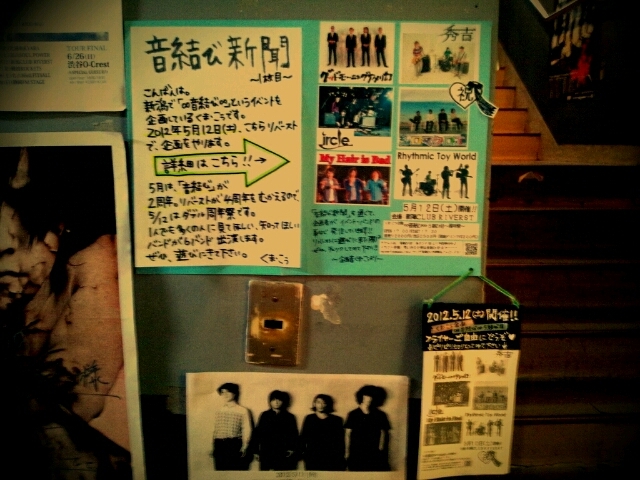 ライブイベント「音結び」企画者くまこぅです。 ircle出演ライブイベントの告知をさせてください。 くま・こぅ企画 ∞音結び∞5結び目〜周年祭〜 開催日:2012年5月12日(土) 場所:新潟CLUB RIVERST 時間:OPEN/START 17時/17時半 チケット:前売り/当日 2000円/2500 (別途ドリンク代300円) 【出演】 ◆ircle(大分) http://www.ircle.jp/pc/index.html ◆秀吉(群馬) http://www.hideyosea.com/ ◆グッドモーニングアメリカ(八王子) http://www.goodmorningamerica.jp/ ◆シロマクロエ(新潟) http://