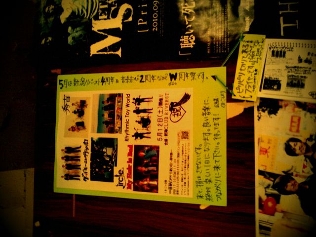 ライブイベント「音結び」企画者くまこぅです。 Rhythmic Toy World初となる、新潟ライブが決定しましたので、告知をさせてください! くま・こぅ企画 ∞音結び∞5結び目〜周年祭〜 開催日:2012年5月12日(土) 場所:新潟CLUB RIVERST 時間:OPEN/START 17時/17時半 チケット:前売り/当日 2000円/2500 (別途ドリンク代300円) 【出演】 ◆Rhythmic Toy World(東京) http://rhythmictoyworld.web.fc2.com/home.html ◆秀吉(群馬) http://www.hideyosea.com/ ◆グッドモーニングアメリカ(八王子) http://w