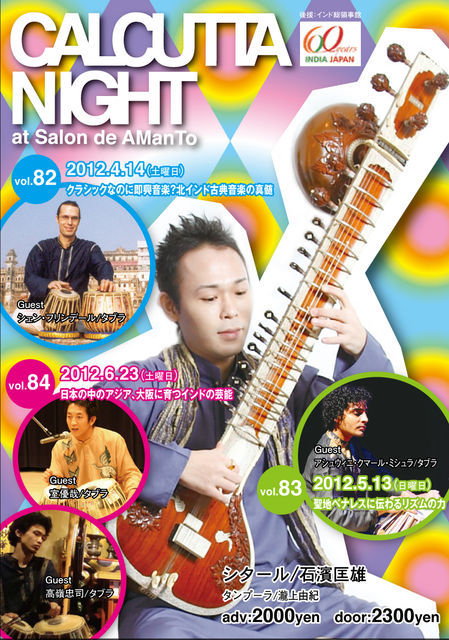 告知失礼します。 梅田から徒歩圏内の中崎町に奇跡的に空襲から焼け残った築120年の長屋。その建物を改築したイベントスペースSalon de AManToでインドの民族楽器シタール奏者の石濱匡雄が毎月様々なアーティストとおおくりするインド音楽イベントCALCUTTA NIGHT!!毎回メニューが変わるCALCUTTA NIGHT特製インド料理と、キタの夜にゆっくりと流れるSPICY!!な時間をお楽しみください。 CALCUTTA NIGHT VOL`83!! 〜 聖地ベナレスに伝わるリズムの力 〜 Guest:アシュウィニ・クマール・ミシュラ/タブラ ガンジス川が三日月の形に曲