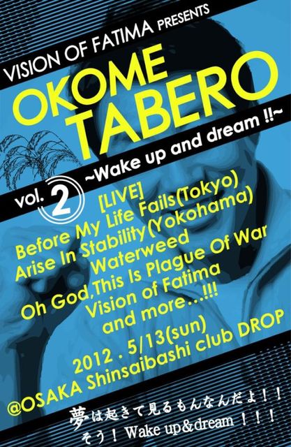 5/13.心斎橋DROP "Vision of Fatima pre.オコメタベロ!vol.2" Before My Life Fails Arise In Stability Waterweed OGTIPOW VoF and more. OPEN/TBA START/TBA TICKET/TBA チケット予約 bmlftokyo@gmail.com
