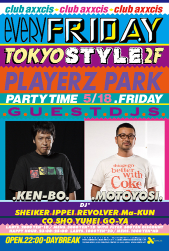 ★CATCHY BOX(PLAYERZ PARK )@渋谷axxcis 5/18(金曜日) 18歳から入場可! 今週金曜は、club axxcis SHIBUYA毎週金曜日恒例満員御礼のBIG PARTY『CATCHY BOX@TOKYO STYLE』 GUEST DJにはDJ KEN-BODJ MOTOYOSI そして、 今若手で大注目の3人DJ KAZDJ ITSUKIDJ COZYと超豪華 毎月、800人以上動員し盛り上がってます2F〜4F行き来自由 1時まで1000円でドリ