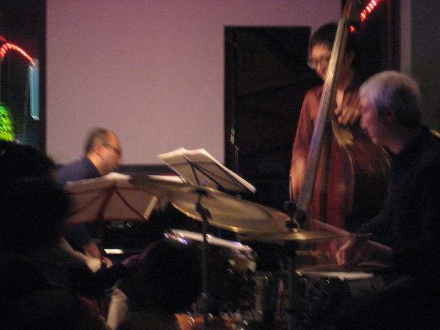 るんるんピアノトリオにテナーサックスがからみます。 流麗なピアノで、客席を沸かせる唐沢さん。 市川在住、市川市立宮田小学校出身、ポール・ジャクソンの「JAZZ for KIDS」を聴いて育ちました。 大塚さんは、若手ながら、ベテランミュージシャンからも信頼厚いベーシスト。メロディアスなベースを奏でます。 長谷さんは、スーパービギナーズ・セッションでお馴染み、参加者には頼れる兄貴です。フロント奏者のフレーズを巧みに引き出します。 宮地さんは、このトリオと初共演! どう呼応するのか、どんな対話が繰り広げられるのか、とて
