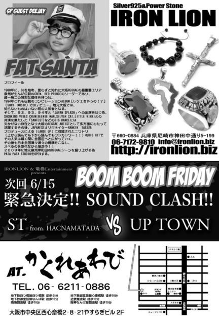 今回のゲストDEE JAYはFAT SANTA!!! さらにNEW TUNEがスマッシュヒット中のAWAKE MONSTAR!!! 要チェックやで〜 毎月第3金曜日開催!! 「BOOM BOOM FRIDAY」@かくれあわび 2012年5月18日(金) 23:00〜 ADM \1,500 w/1d 【SP GUEST DEEJAY】 FAT SANTA 【GUEST DEEJAY】 AWAKE MONSTAR 【GUEST SOUND】 Bacchang(From夜バツ) 【SOUND】 FRUSTRATION UP TOWN TOP CITY 【TOTAL NAVIGATER】 K-TALTON かくれあわびコミュニティー http://mixi.jp/view_community.pl?id=3718288&gu