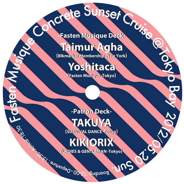 〜〜〜 Fasten Musique Concrete Sunset Cruise@Tokyo Bay 〜〜〜 5/20日曜日の午後、東京湾サンセット・クルーズ・パーティーを開催します。 3年ぶりとなるFasten Musique Concreteのボート・パーティー、最高の開放感を体感できる屋上デッキと、広い内観、250名のキャパシティーが特徴のRoseが、東京湾に初登場! ニューヨークのアンダーグラウンド・テクノ/ハウス・シーンを牽引し、その勢力を拡大しているBlkmarket Membershipのボス、Taimurをゲストに迎えます。 東京湾の船上で初夏の風を感じながら、抜群のシチュエ