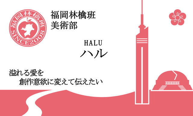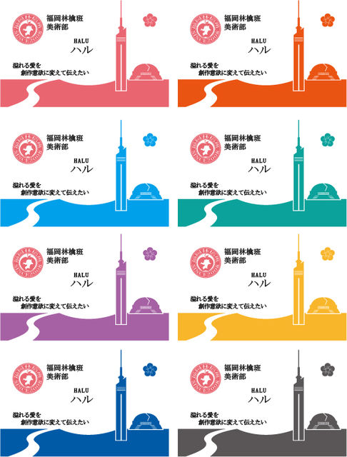 みなさんこんにちは。 班員ハルです。 この度福岡林檎班の名刺を作成することになりました。 投票の結果 1:正しい街(ロゴ以外色変え可:街1色)21票 2:孔雀(ロゴ以外色変え可:羽2色)5票 3:猫(ロゴ以外色変え可:目1色)6票 (1と2!や1or3は1票ずつと数えました) 1の正しい街に決定しました。 印刷会社はこちらにしようと思います。http://www.printsta.jp/ 片面4色刷りで100枚720円の予定です。+で送料を人数分で割ってご請求いたします。 基本ロゴはピンクですが、街の色は変えられます。 色見本をご用意しました。