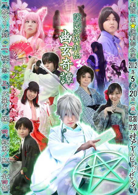 ついに今年もやってきた… 年に一度しかないレアな創作ファンタジー舞台! ↓ 劇団「裏☆演劇部(略称:ウラエン)」2012年 本公演 『陰陽師 異新伝 幽玄奇譚(ユウゲンキタン)』 脚本+主題歌/ぷちこ チケット:前売¥2000/当日¥2500 ★チケット購入ページはコチラ★ http://uraennet.fc2web.com/ticket.html 場所:神戸アートビレッジセンター2階ホール 日にち:5月20日(日) 時間:13時30分〜&17時30分〜(2回公演、各2時間程度) 座席:自由席 撮影:公演中は(スタッフ以外)不可ですが、公演後の撮影はOK