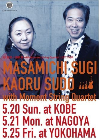 <杉真理+須藤薫 with Moment String Quartet in 名古屋> 日時:2012年5月21日(月) 18:30開場/19:30開演 出演:杉真理(vo,g)、須藤薫(vo)、モーメント・ストリングカルテット (有馬真帆子Vln 小野瀬はるかVln 小弥祐介Vla 郷田祐美子Vc) 会場:名古屋・今池「TOKUZO」 名古屋市千種区今池1-6-8 ブルースタービル2F 料金:前売5,000円/当日5,500円(1ドリンク代別) チケット:チケットぴあ、会場予約 問合せ:「TOKUZO」(TEL 052-733-3709 http://www.tokuzo.com/ )