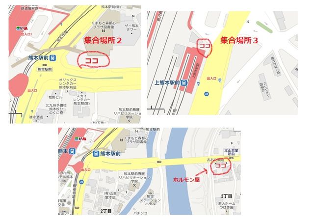 tokuさん、るぅさん、yamaakiの主催で5月25日(金)の平成金曜練習会に蛍観察ラン企画を立てました。 3つの集合場所(TUTAYA、熊本駅、上熊本駅)で合流し、崇城大学近くの蛍生息地まで走り蛍観察。 その後、各集合場所まで戻り解散、熊本駅まで戻る人は河川敷近くのホルモン屋でホルモン/ビール(または写真の河川敷で)、TUTAYAまで戻る人は温泉の各オプション付き! それぞれの都合で下記参加パターンを選択して参加表明下さい! 以下、詳細 <計画/時刻> ・往路:TUTAYA 7:30−(2 km)−熊本駅7:45−(3.5km)−上熊本8:15−