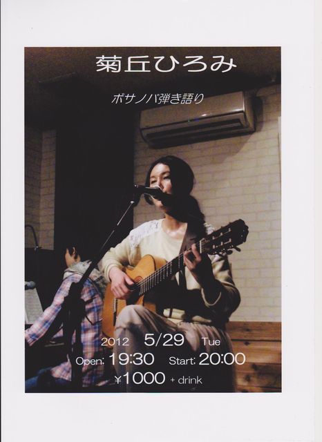 29日(火)Bralzil ボサノバ弾き語り 菊丘ひろみ(G/Vo) Open;19:30 Start;20:00 ¥1000+drink