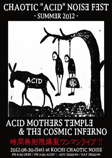 今週末一本目06月29日(金)は、今月頭にハウリングセッタで爆裂ギターをかましてくれた"the bento"君在籍のポップバンド"the bento band"が来高!! 続く二本目06月30日(土)は河端一氏率いる最強のサイケロックバンド"A.M.T"の地獄組が来高!! 今回はレコ発ツアー最終日ということもあって気合も充分、最高級なハードコアサイケが炸裂すること間違いなし!!これを見ずして何を見る!! ラスト07月01日(日)は、80sニューウェーブ臭放つサイケデリックロックンロールバンド"いったんぶ"が来高!! 詳細はこちら(↓) ● 06月29日(金) "DJ CHAOS" Presen