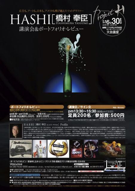 写真に関するイベントです。 22歳で単身渡米して以来、約40年に渡り世界のトップクラスの写真家として存在し続け物撮り写真をアート作品に昇華させたるフォトグラファー・HASHI氏。彼による講演会と作品批評会が6月30日に行なわれます。プロによる話を聞いたり自分の作品を批評してもらえるチャンスです。興味ある方はぜひ参加してみましょう。 ◎ポートフォーリオ・レビュー(作品批評) 時間:9:30~12:00 参加費:5,000円 見学のみ2,000円 定員:30名 ◎講演会/サイン会 時間:開場13:00 開演13:30〜15:30 参加費:500円 定員: